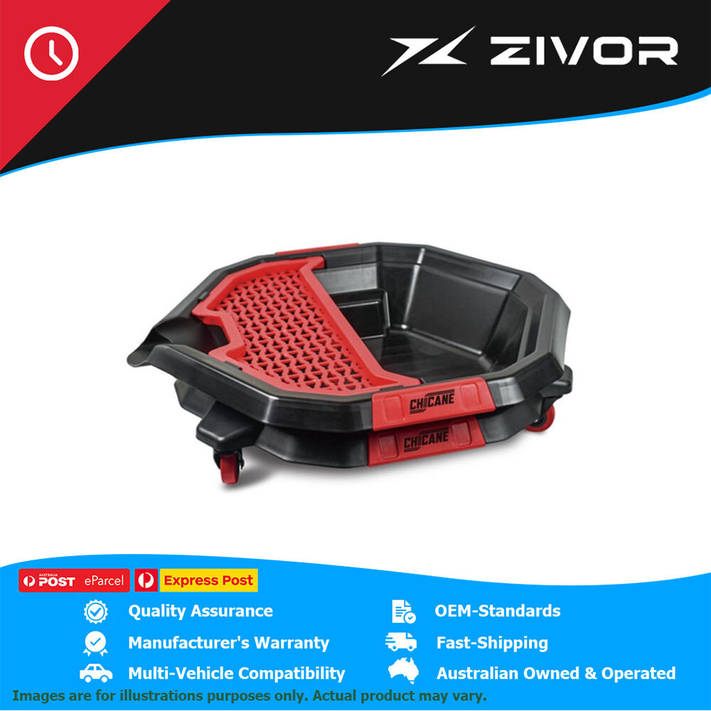 The Chicane 8L Oil Drain Pan on Wheels offers easy mobility with its 50mm castors and features a removable top shelf for convenient oil filter draining. Its moulded pouring lip ensures spill-free disposal, while the durable thermoplastic construction resists most chemicals and solvents.