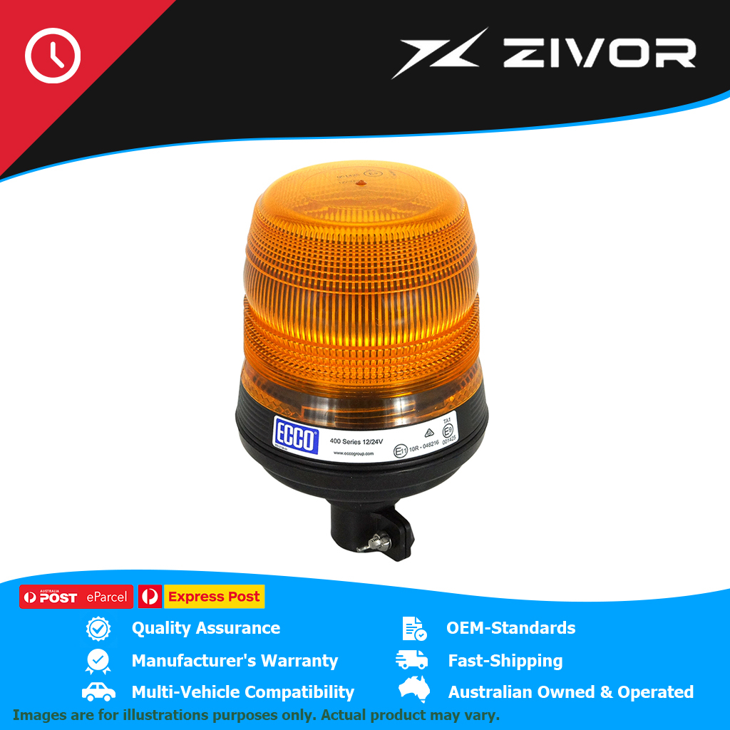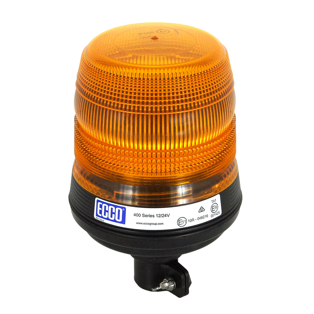 Get all the advantages of our latest LED technology in the popular 400 series beacon. This ECE Reg 65 LED beacon features 12 powerful LEDs arranged to produce a 360° simulated rotate flash pattern, with a flash rate of 120FPM for maximum visibility. Combining the solid state, maintenance free and long life nature of LED technology with a proven tough housing design. This ECCO produced beacon is designed to maximize resilience to excessive vibration and increase the life of the product.
