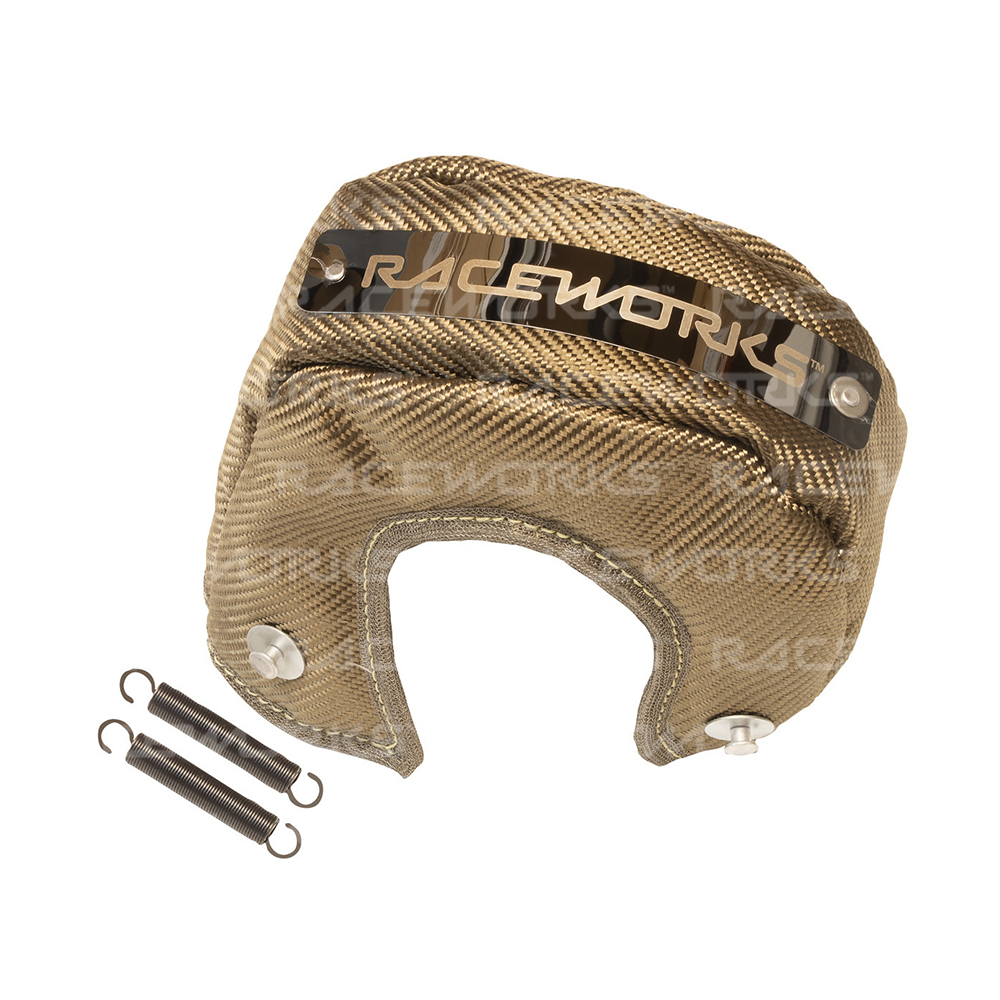 Raceworks Extreme Duty Turbo Beanies, also referred to as Turbo Bags or Turbo Blankets, are constructed using a high temp titanium material, rated to 1370degC both internal and external.