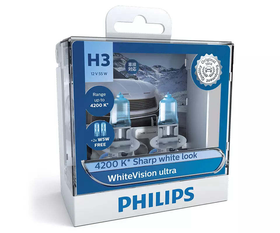 Philips WhiteVision ultra is designed for drivers who are looking for an upgrade with the style and appearance reminding of LED lighting, but drive a vehicle with halogen technology. Thanks to the new and advanced coating formula on the glass, WhiteVision ultra bulbs are our whitest road-legal lights providing a stunning look in the headlamp's reflector.