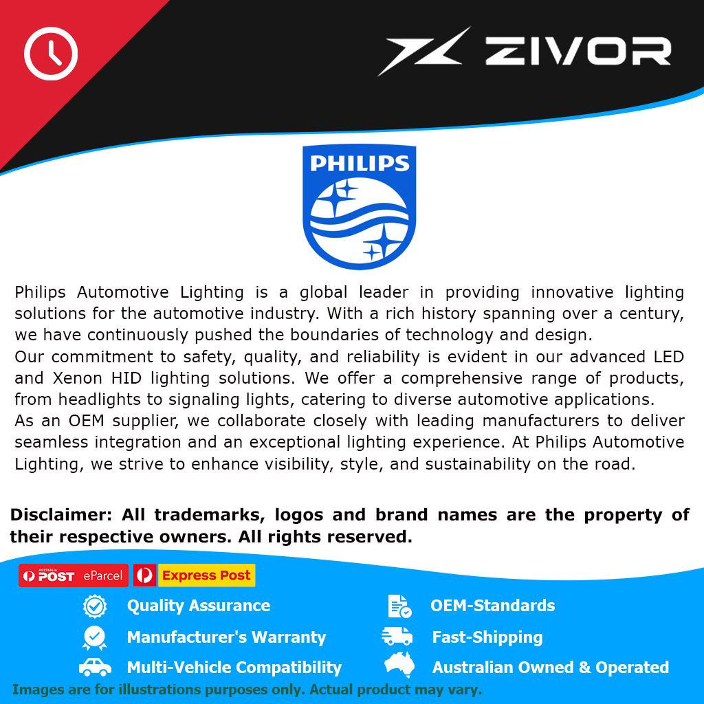 Philips automotive products and services are considered best in class in the Original Equipment Manufacturer market and the aftermarket. Manufactured from high-quality products and tested to the highest specifications, our products are designed to maximise the safety and comfort of our customers' driving experience. Our entire product range is thoroughly tested, controlled and certified (ISO 9001, ISO 14001 and QSO 9000) to the highest ECE requirements. Put simply, this is quality you can trust.